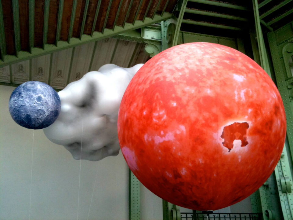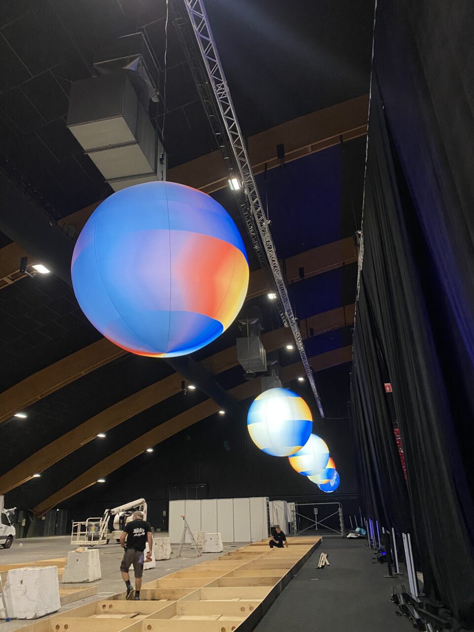 Ballons éclairants posés au sol